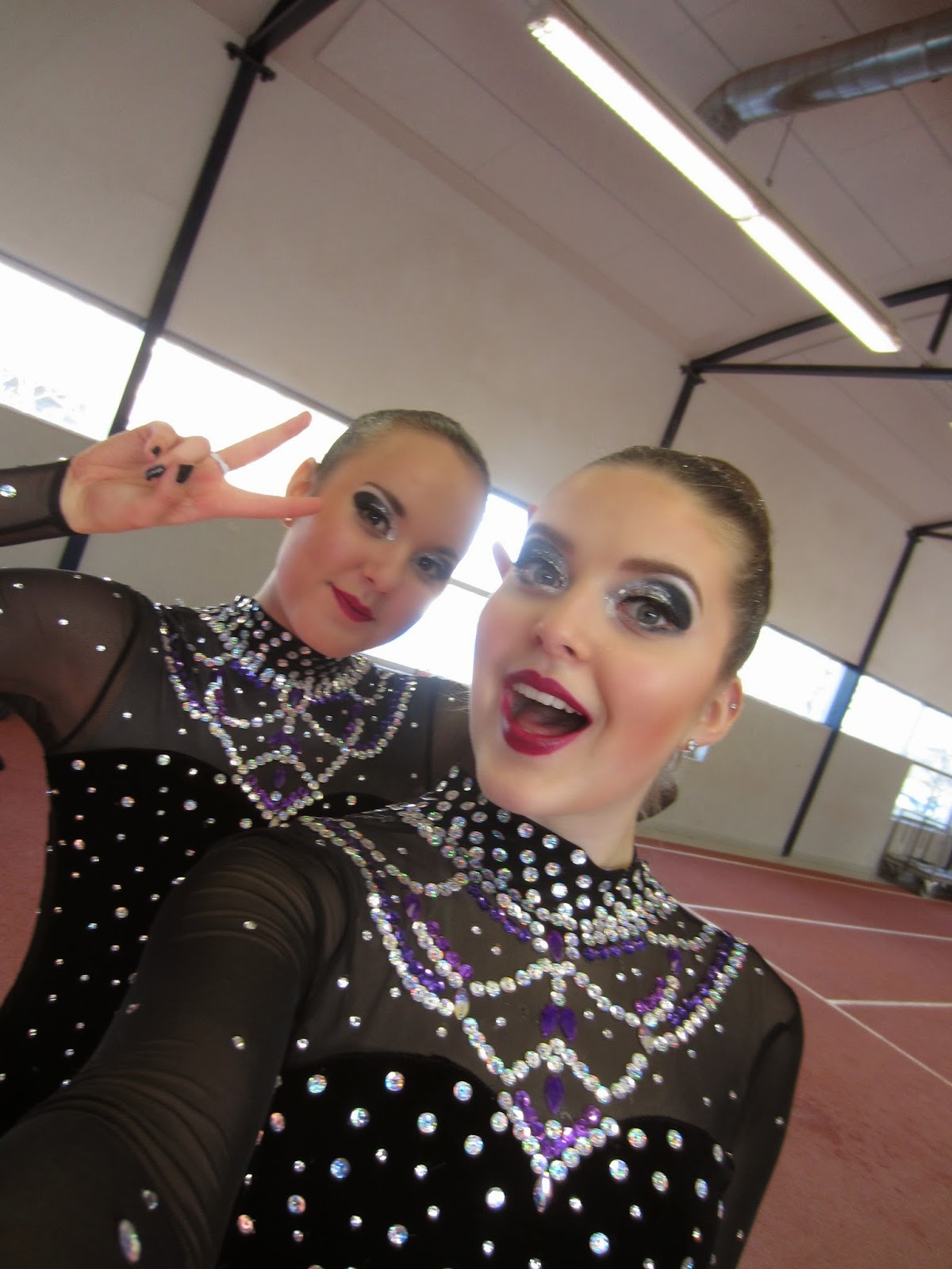 Noh aamu meni hyvin, harkka myös, mutta sitten alkoi tapahtua kun kuulimme yllättäen toisen joukkueen valmentajilta suoritusnumeromme muuttuneen... Netissä julkaistua järjestystä olikin muutettu vielä yön aikana, (mikä ei varmaan yhdellekään joukkueelle ollut mukava yllätys, suunnitelmat kun joutui laittamaan aivan uusiksi suuntaan tai toiseen) ja tosiaan tästä tiedottaminen ei kisajärjestäjien taholta ollut ihan mallillaan.